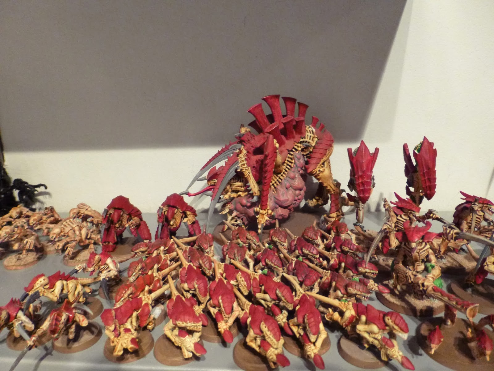 In the meantime, the hive fleet approaches. Time and money constraints mean this will be a case of buy the codex and one model rather than grab one of everything. I love the look of the harpy and thus it shall be that one model. Prior to release I am trying to get my modest swarm up to scratch. Basecoats should be done on all of them by the time release day comes and so I'll be able to get straight on and play with the new rules. Further down the line I'd love one of the swarm boxed sets to really flesh out the army but for now what I have will suffice. Here's the progress sofar: